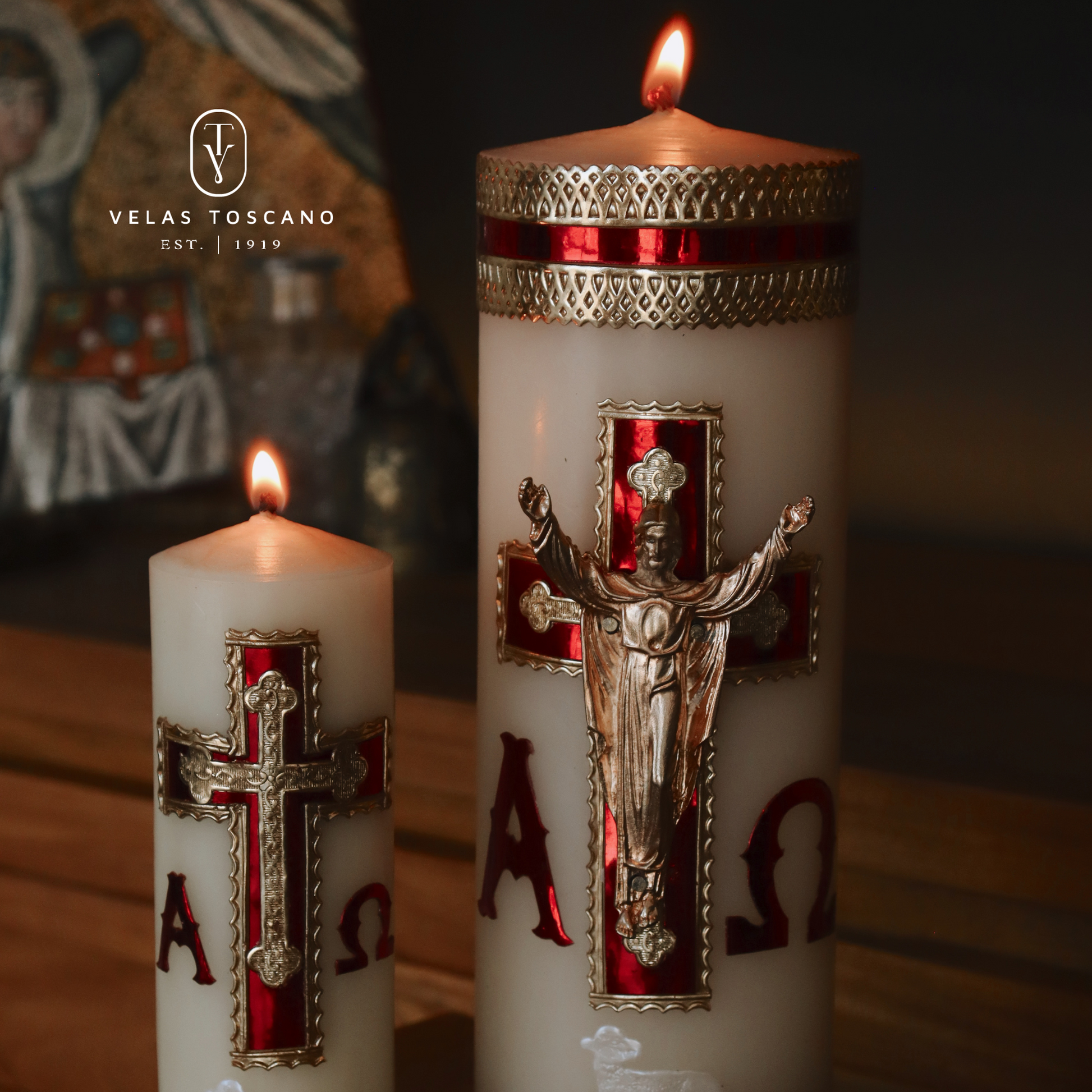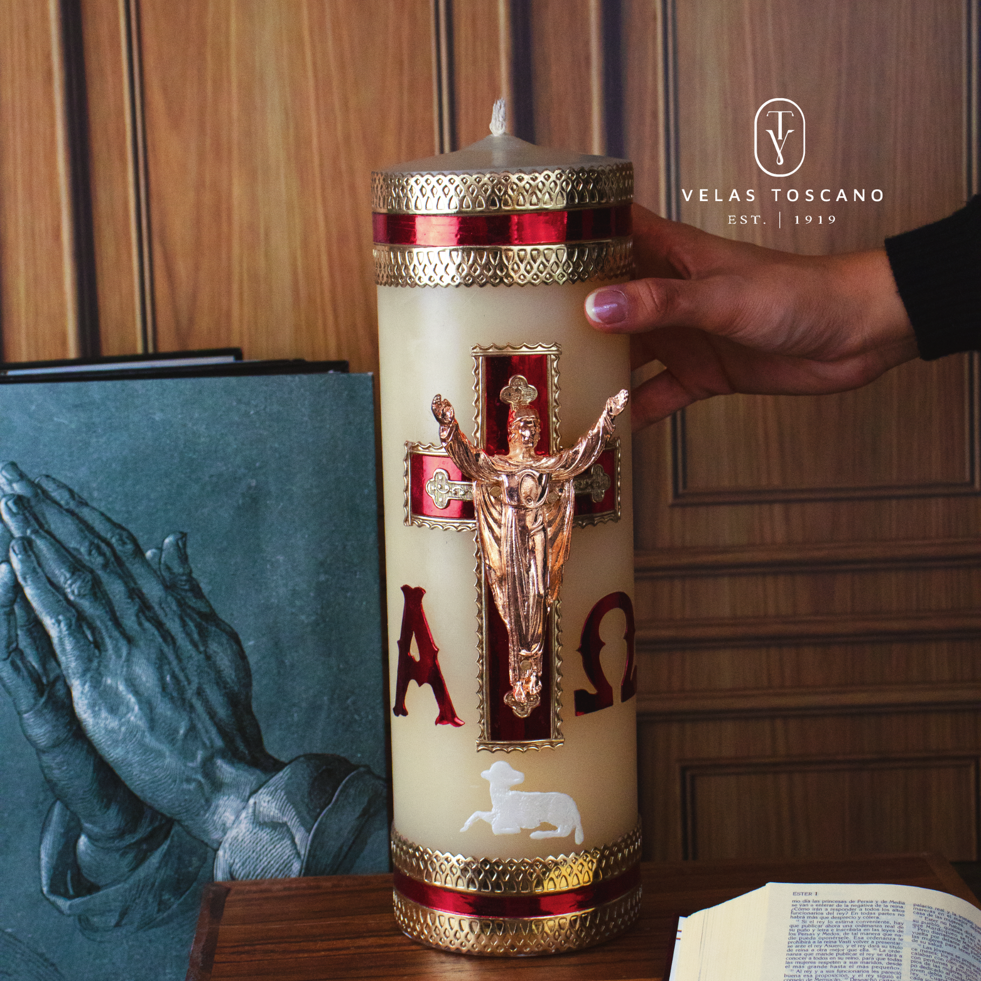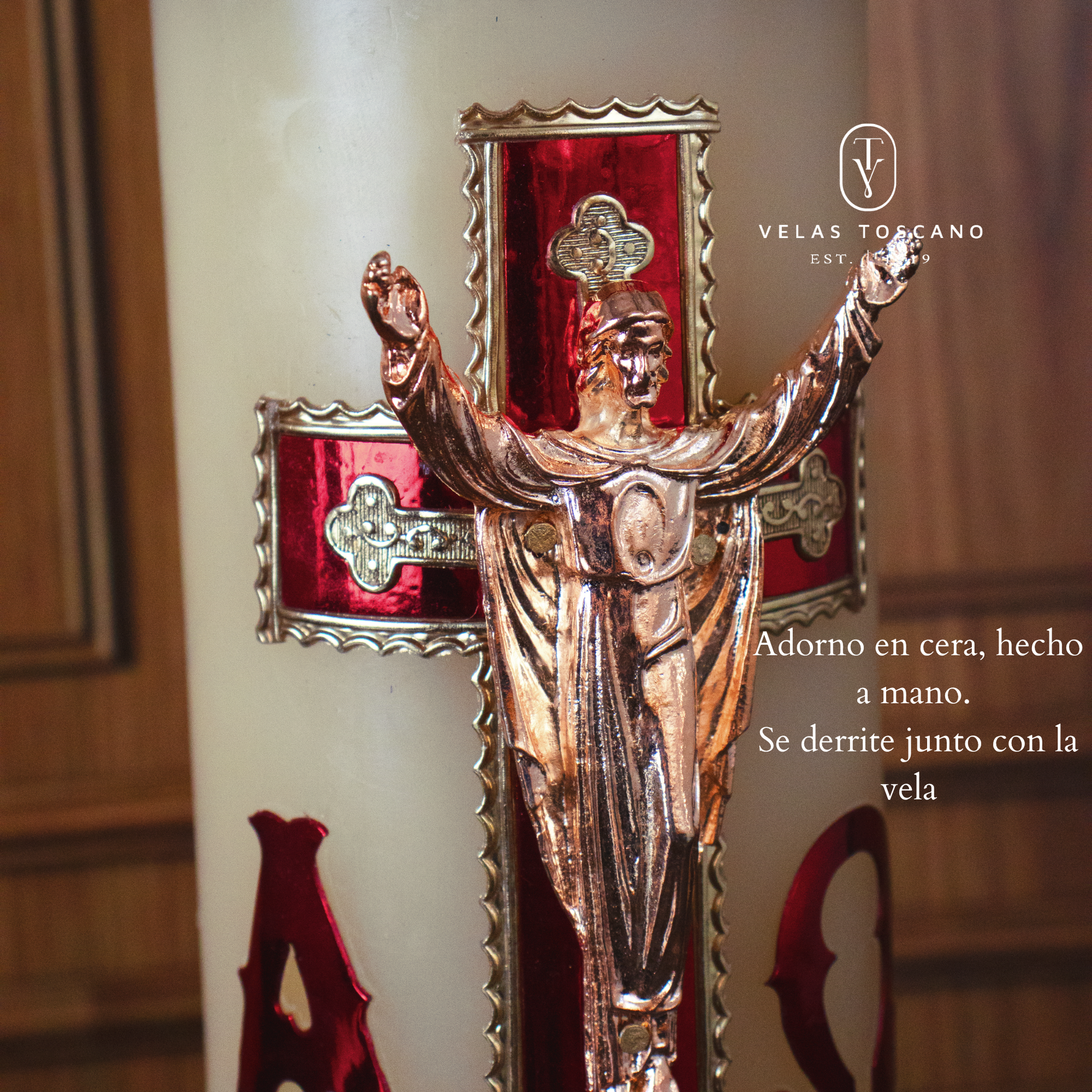 Presentamos nuestro Cirio Pascual, una expresión luminosa de fe y esperanza, meticulosamente elaborada a mano con cuidado y devoción, con detalles hechos en cera. Este símbolo sagrado irradia la luz de la resurrección y la vida nueva, siendo más que una vela; es un faro de fe que guía y reconforta en los momentos de celebración y reflexión. Que la luz de nuestro Cirio Pascual ilumine su camino, recordándonos el poder transformador del amor divino y la promesa de vida eterna. Nuestras velas son hechas a mano con una fórmula especial de cera.