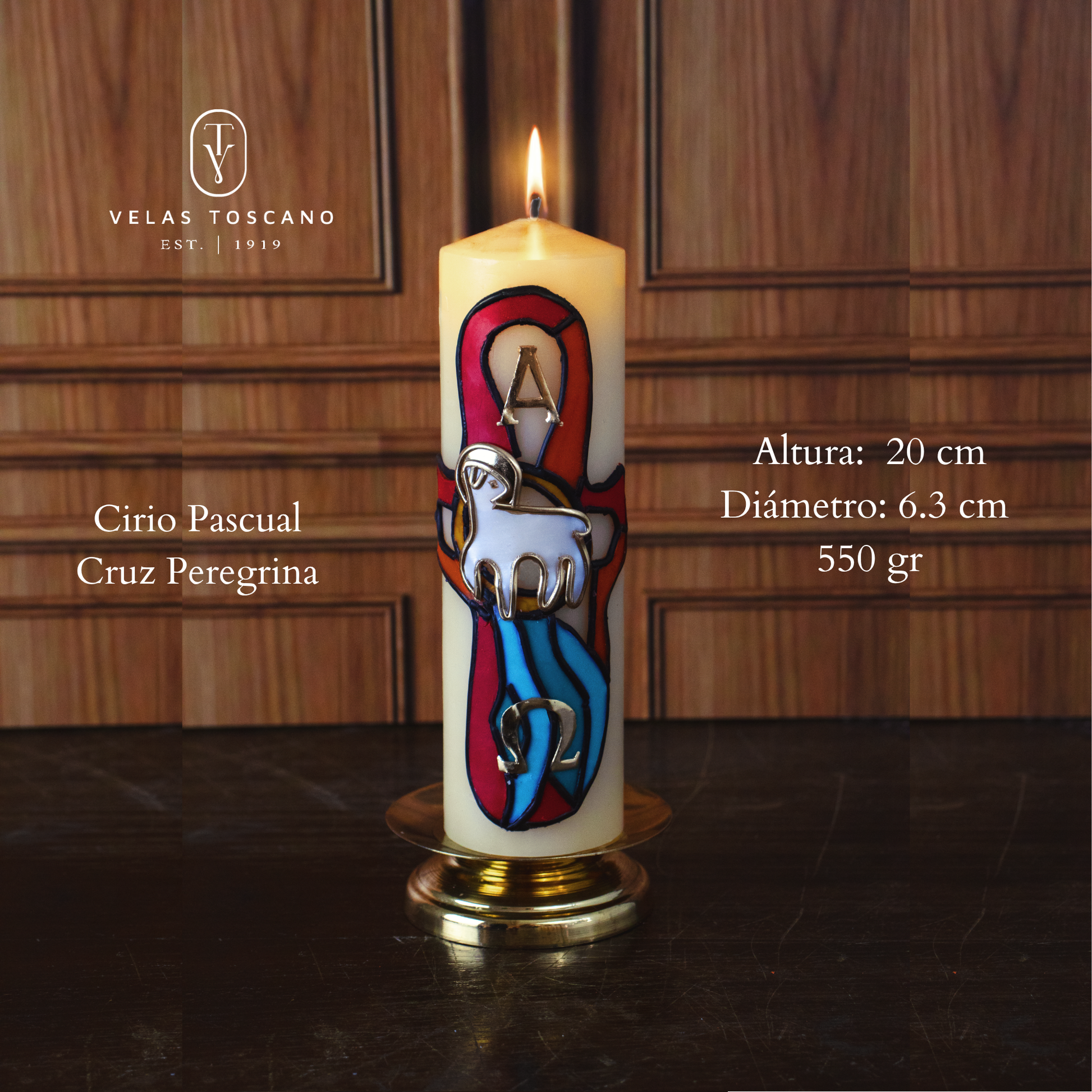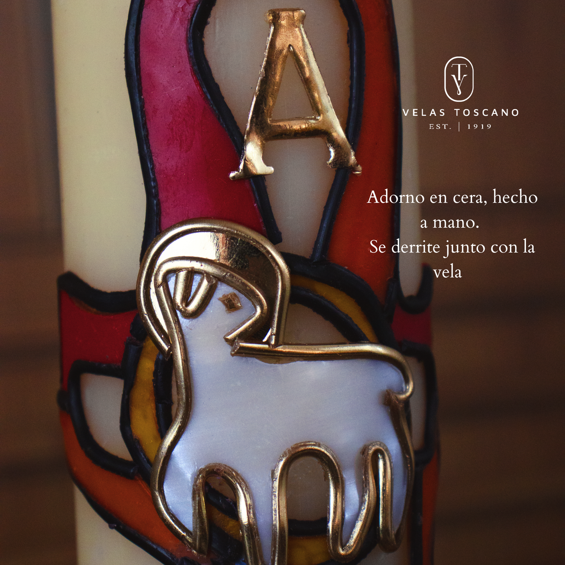 Descubre nuestro Cirio Pascual, hecho a mano con devoción y cuidado. Ilumina con amor y promesa de vida eterna. Con símbolos sagrados que guían y reconfortan en momentos de celebración y reflexión. Diseño sin igual de cruz y símbolos en cera y dorado.
