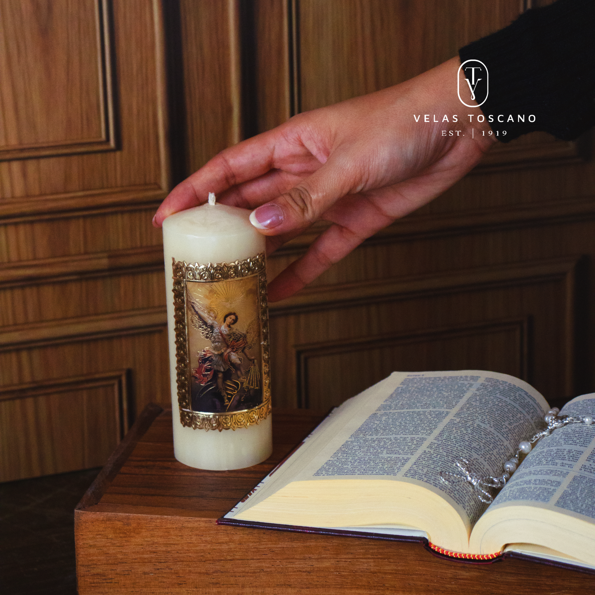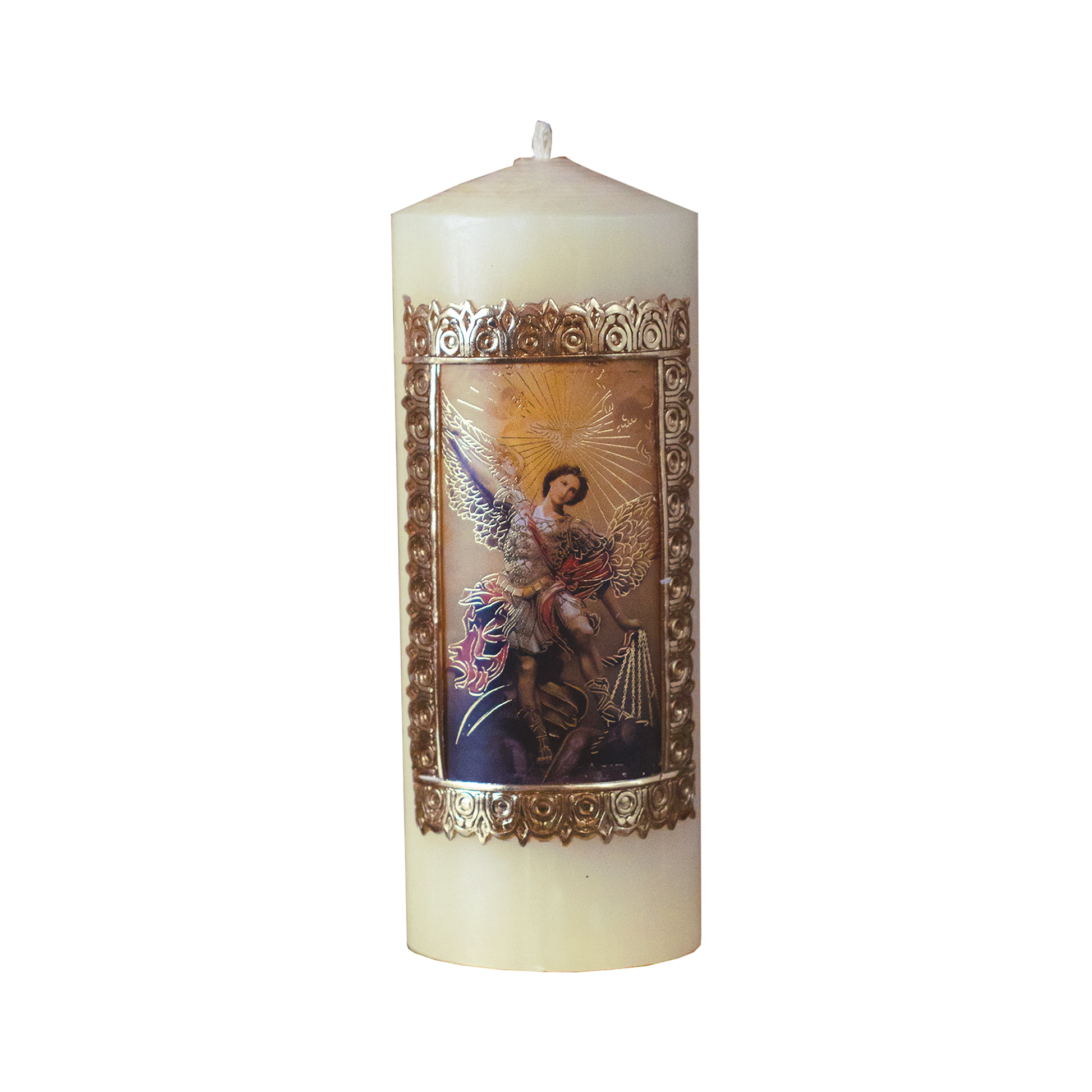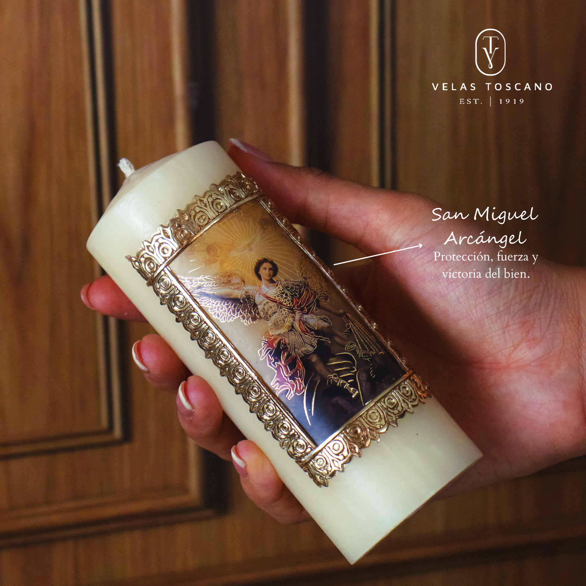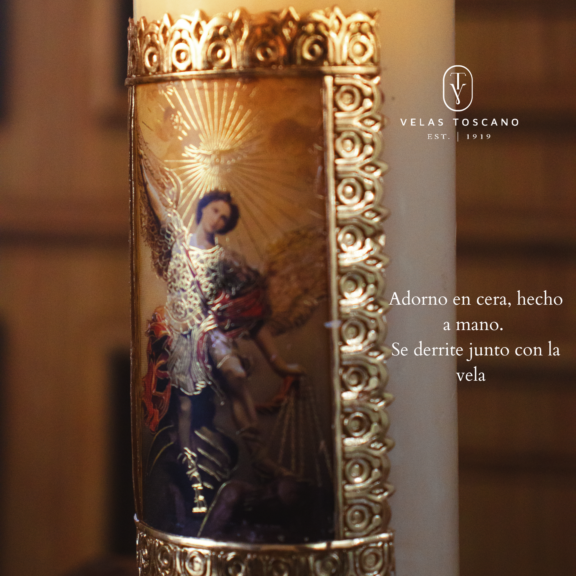 Enalteciendo al arcángel San Miguel, el valiente guerrero celestial y protector de la fe, presentamos nuestra vela dedicada a su poderoso patrocinio. Elaborada a mano con amor y devoción, esta vela transporta la esencia de la valentía y la protección divina. Encendiendo esta vela de San Miguel, se invoca la presencia y el amparo del arcángel en la lucha contra el mal y las adversidades. Su llama ardiente simboliza la luz que disipa las tinieblas y la fuerza que conquista cualquier obstáculo, es un signo tangible de esperanza y protección divina en tiempos de necesidad. Que la luz de nuestra vela de San Miguel ilumine su camino, otorgándole seguridad y fortaleza en su camino espiritual. Que el poderoso arcángel San Miguel.